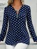 2025 Plus Size Women's Polka Dot Long Sleeve V-Neck Zipper Pullover Top