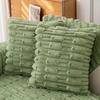 2pcs Set of Soft and Warm Striped Faux Fur Waist Pillow Covers, Cream Color Series, Fluffy Velvet Cushion Covers, Without Pillow Core