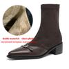 Krazing Po Microfiber Winter Pointed Toe Size 33 Western Boots Size 43 Metal Buckle Thick Heels Elastic Ankle Boots
