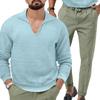 Autumn/Winter New Arrival: Men's Waffle Weave Casual Long-Sleeved Top and Trousers Two-Piece Set