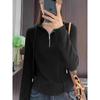 Women's Gray Hooded Sweatshirt, New 2025 Edition - Small Size, Spring Half-Zip Inner Wear, Short Base Top