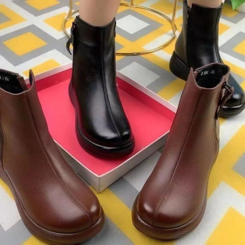 Soft Leather Ankle Boots with Fleece Shoes, Muffin Thick-soled Boots with Thick Cotton Boots, Women's Boots