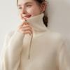 Women's Korean Style Half-Zip Cashmere Sweater - Loose, Slimming, Thickened Pullover with Turn-Down Collar for Autumn/Winter.