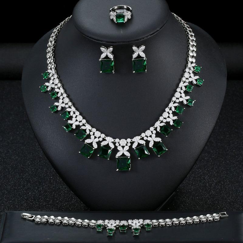 Zircon Necklace Earrings Bracelet Ring Four-piece Set Bridal Wedding Dress Dinner Accessories Ladies