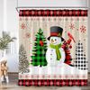 Funny Snowman Shower Curtain Silver Pine Branches Winter Forest Cedar Red Truck Elf Christmas Bath Curtains Home Bathroom Decor