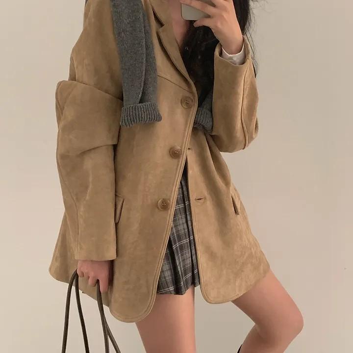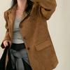 Vintage Korean Style Autumn Blazer Women Loose Fit Long Sleeve Coat with Double Pockets Elegant Office Wear