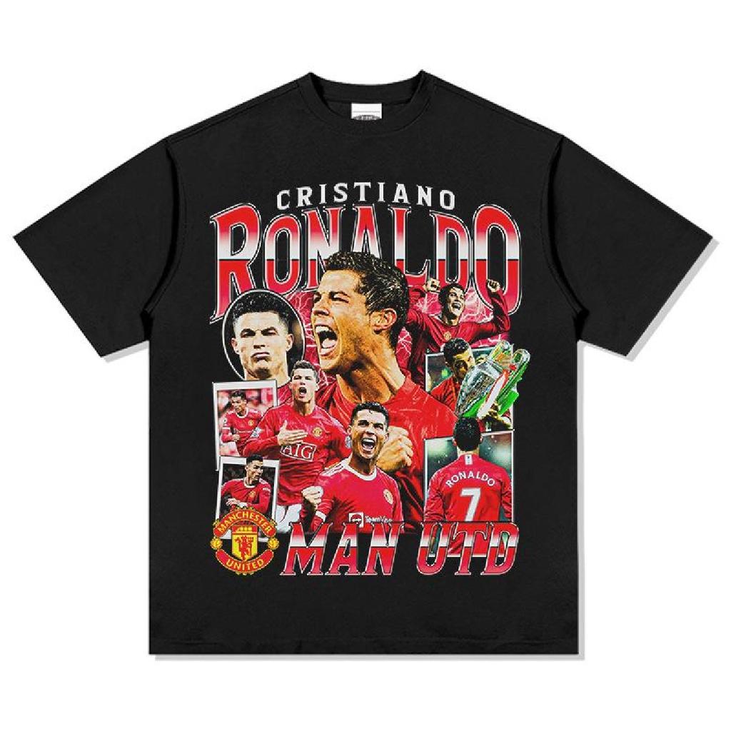 Camiseta estampada com estampa da estrela do futebol Cristiano Ronaldo 2025, tendência, confortável, retrô, 100% algodão, gola redonda, manga curta