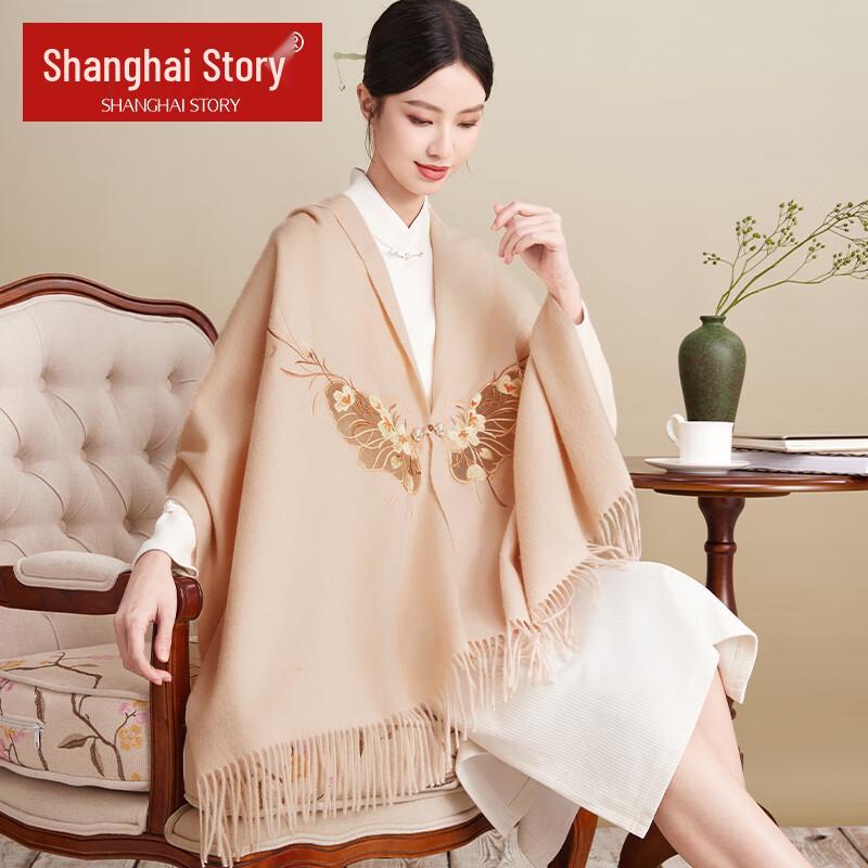 Shanghai Story Women's Embroidered Wool Shawl Scarf Gift Set