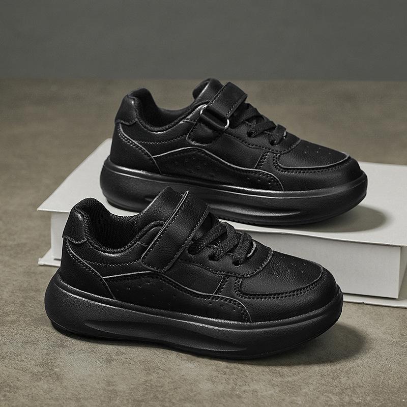 Children's Small Black Shoes Children's White Sneakers Boys' Small White Shoes Leather Surface Elementary School Boys Board Shoes Girls' White Shoes