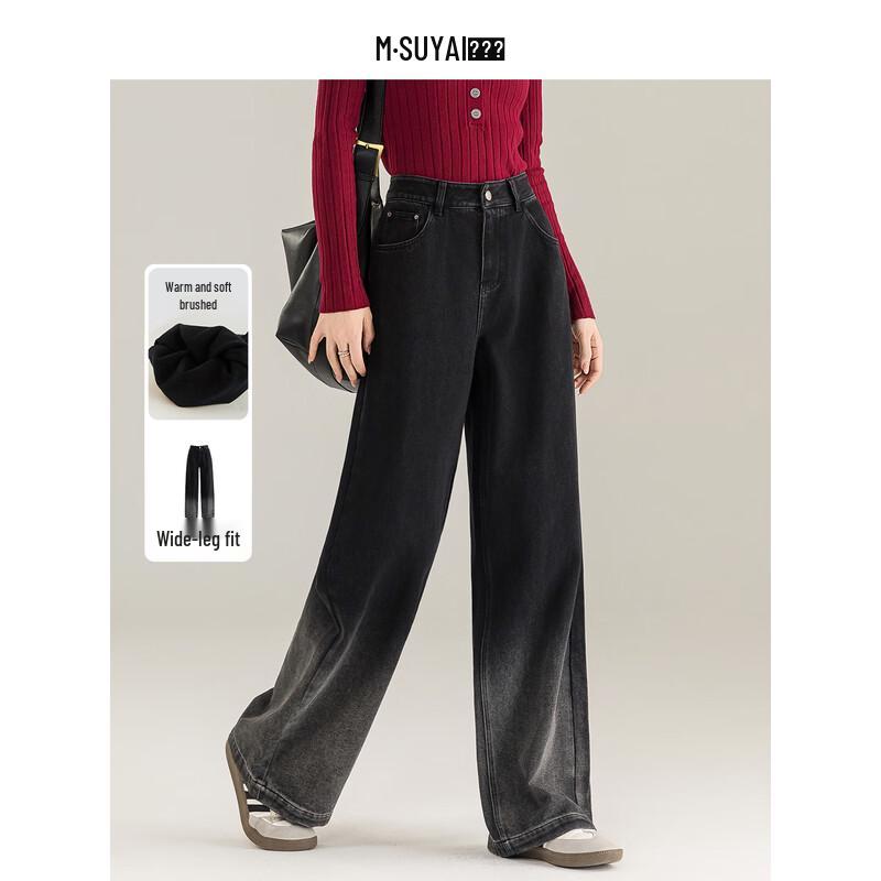 Mengshuya Women's Gradient High-Waist Loose Straight-Leg Winter Jeans