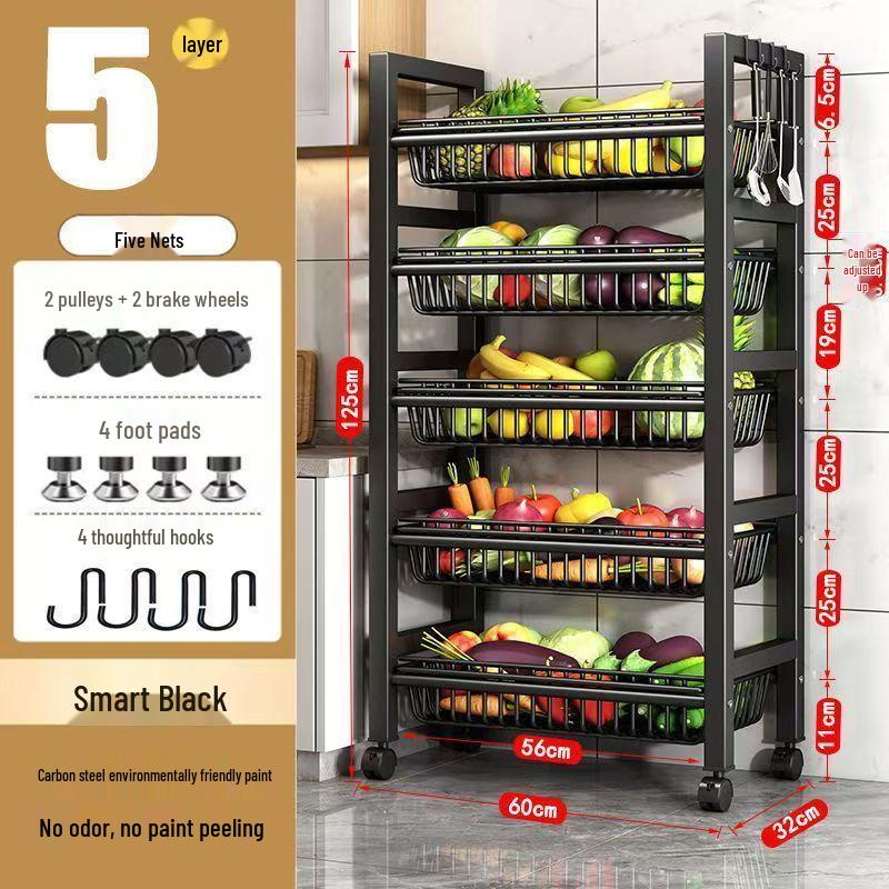 Multi-Layer Kitchen Rack: Extra Thick Microwave, Fruit & Veggie Storage with Wire Baskets & Rollers