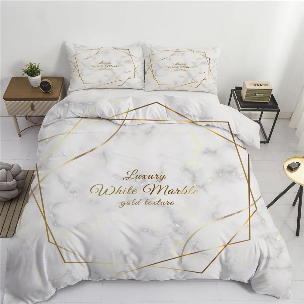 Conjunto de Cama de Luxo Mármore Branco e Dourado Tamanho Casal King Simples Marmorizado Conjunto de Capa de Edredom com Fronha Decoração Moderna para Quarto Conjunto de Cama
