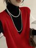 Colete Suéter Sem Mangas Feminino Casual com Decote em V, Tricô de Cabo 100% Lã para Sobreposição no Outono/Inverno