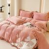 Conjunto de Cama Grosso Quente de Veludo Leiteoso com Renda e Lã Coral - Design Aconchegante Antiestático para Outono/Inverno