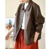 Elevate your spring and autumn wardrobe with this chic PU leather jacket designed specifically for women. Featuring a stylish turn-down collar, this jacket exudes contemporary elegance while ensuring a comfortable fit. The sleeveless design makes it versatile for layering over your favorite tops, and the chenille material for fur adds a touch of luxury. Crafted with spandex material, this jacket offers both flexibility and durability, making it a must-have staple for any fashion-forward woman. Perfect for casual settings, this loose-fit jacket effortlessly combines comfort and style.