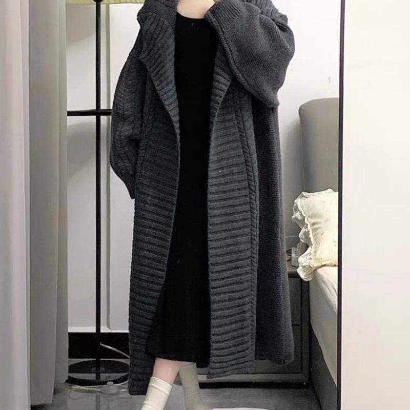 Women's Autumn Winter Knit Cardigan: Korean Style, Large Lapel, Mid-Length, Loose Fit, High-End Casual Sweater.