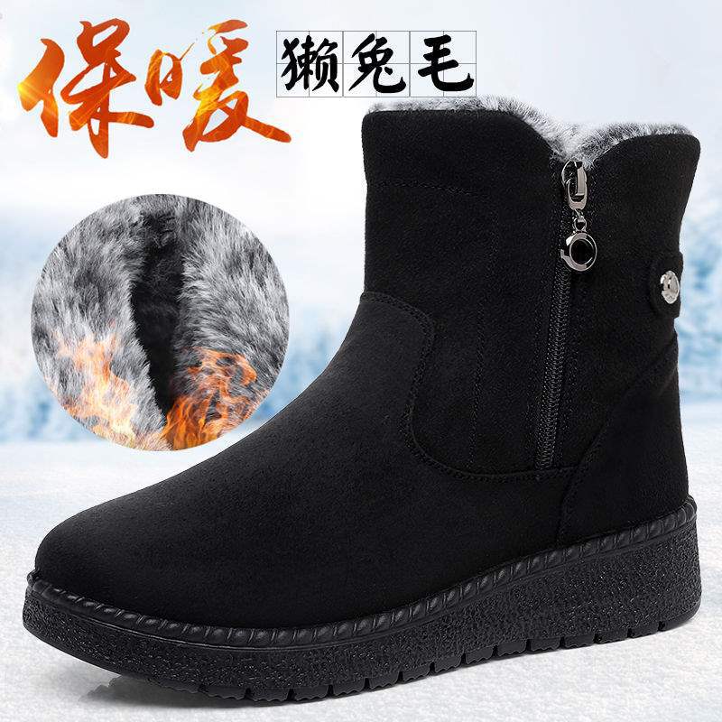 Women's cotton shoes winter velvet warm mother shoes Rex rabbit hair old north cloth shoes middle-aged and elderly non-slip snow boots