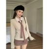 Slimming Color Block Two-Piece Pleated Long Sleeve Drawstring Top
