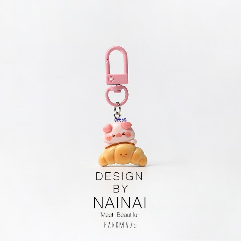 Pink Pig Dessert Keychain Pendant: Cute Cartoon Jewelry Accessory for Girls