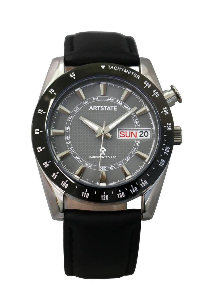 Leather Date and Day Gray Long Life [ARTSTATE W335E] Men's Radio-Controlled Watch, Strap, Display, Dial,