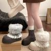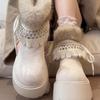 Women's thick bottom hairy mouth butterfly lace fashion winter lightweight warm anti cold snow boots non-slip casual sneakers cotton boots