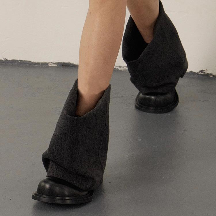 Leather retro niche denim shorts tube boots round head thick heel short boots women's 2025 new fashion stacking boots