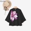 ZANZEA Blusa Feminina Gola Alta Manga 3/4 Estampa Floral Elegante Casual