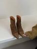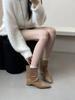Women's shoes real shot pointed retro elastic boots autumn and winter suede splicing thin boots rear zipper versatile solid color