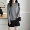 Gola de Renda Romântica Francesa com Camisa Base de Renda Suéter Chic Jacquard de Manga Comprida Top Solto Vazado