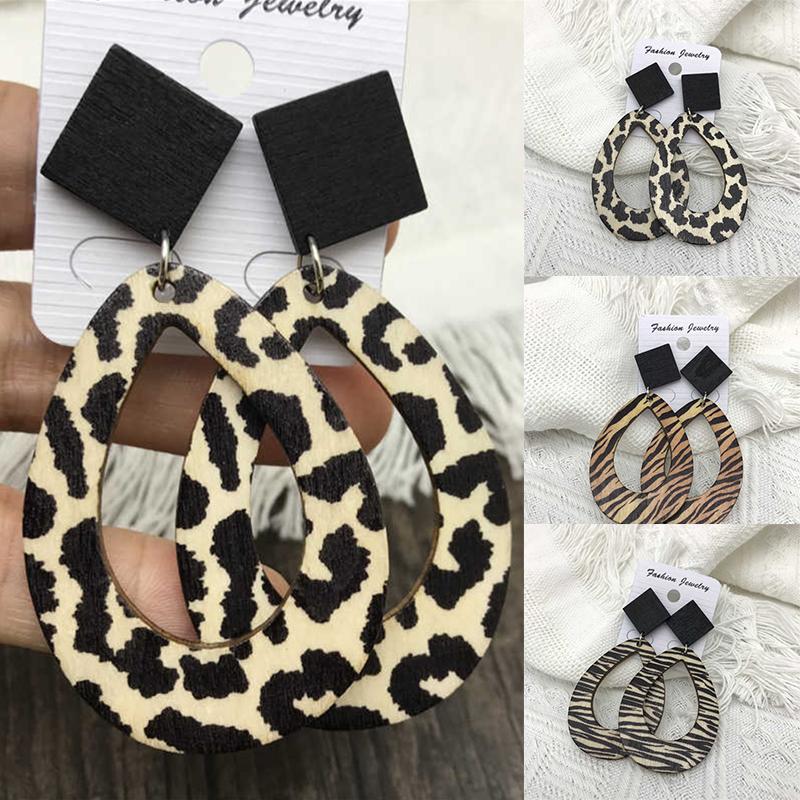 Raindrops Dangle Leopard Zebra Pattern Vintage Bohemian Style Earrings Wooden