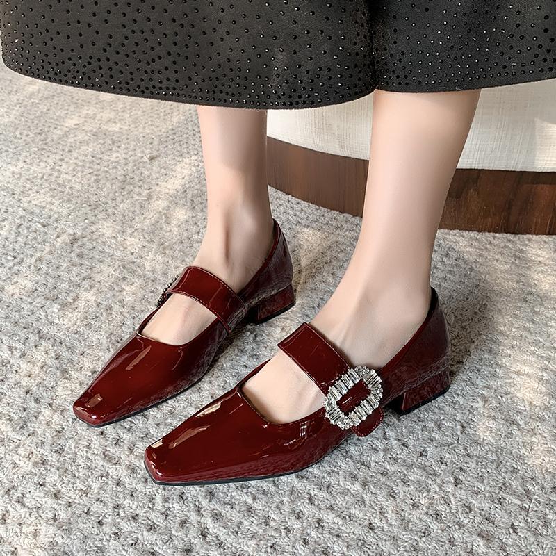 Fashion Red Mary Jane Women Pumps Thick High Heels Shoes Female Square Toe Shoes Fashion Party Woman Shoes 2025 New