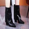 Botas de Salto Alto Sexy Femininas Sapatos Elegantes de Bico Fino Meio da Panturrilha Botas de Moda em Couro Scarpins Nova Tendência de Vestido Mujer Botas