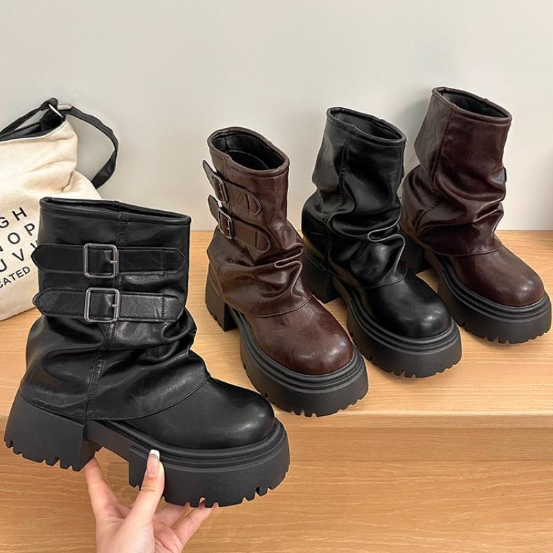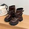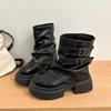 Winter Platform Thick Sole Woman Ankle Boots Design Belt Buckle Slip On Shoes Punk Style Leather Knight Short Bottes Femmes