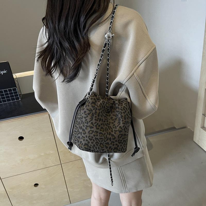 Leopard print women's bag 2025 portable Korean version bucket bag women's storage bag women's oblique span bag