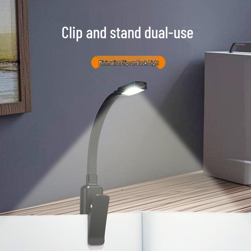 Luz de Leitura Portátil com Clipe de 5 LEDs com Luz de Fundo Auxiliar, Controle de Três Botões e Funcionalidade de Luminária de Mesa.