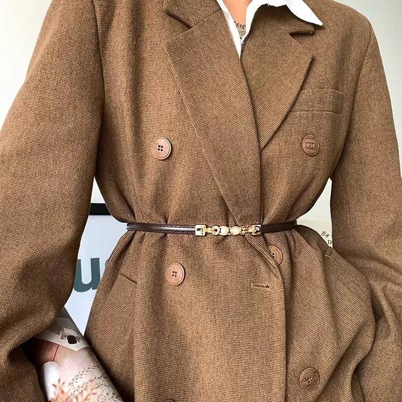 New Pearl Buckle Thin Women Belt PU Leather Elegant Adjustable Wild Waistbands For Female Lady Dress Skirt Decorative Straps