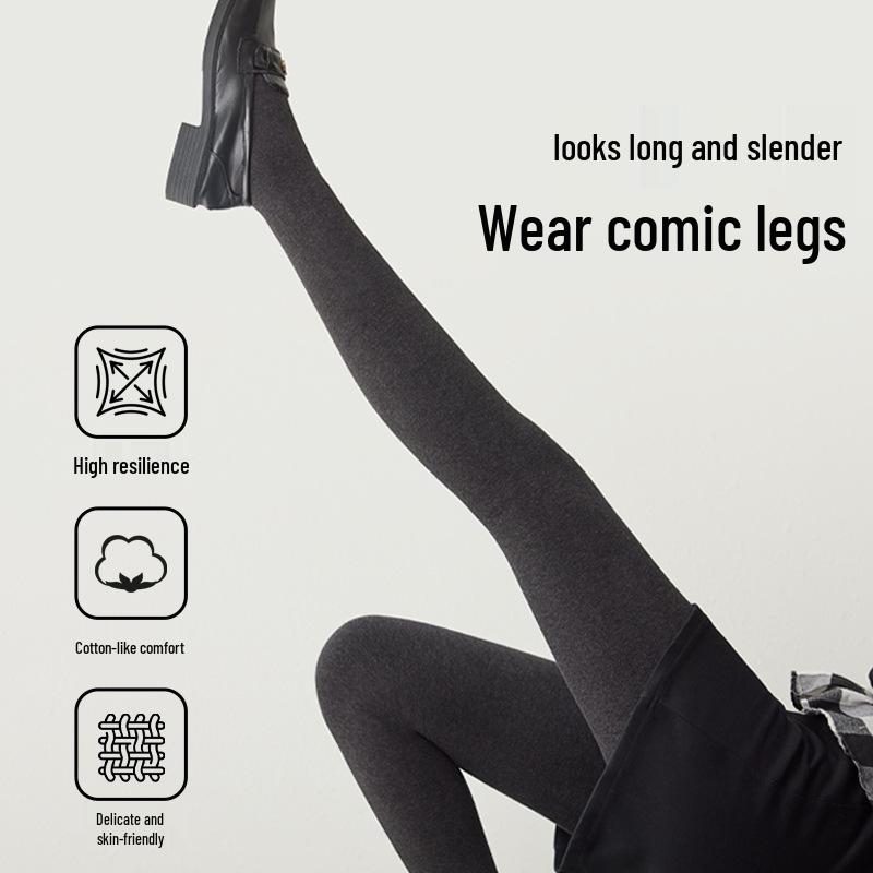 Korean-Style Fleece-Lined Cotton Leggings with Tummy Control and Long Socks for Women, Perfect for Autumn and Winter