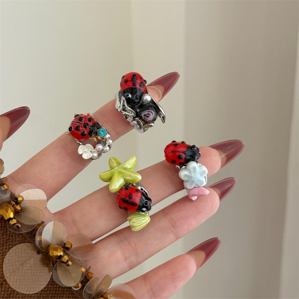 Geometric Insect Drip Oil Ring Rhinestone Painting Ring Fashion Chunky Enamel Ring Party