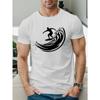 Camiseta Confortável Masculina Onda do Mar Espirrando Espuma Tee Algodão Branco Manga Curta Oversize