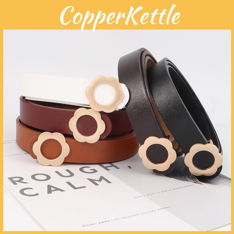 Leather Pu Trendy Waist Belt Women Flower Shaped Alloy Buckle Outdoor Decoration