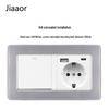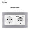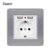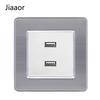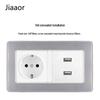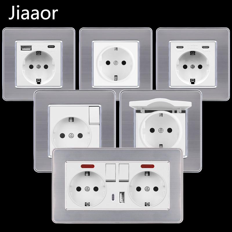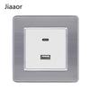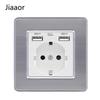 Padrão Europeu Tipo 86 Painel de Interruptor e Tomada de Parede Duplo em Aço Inoxidável com USB-C, Estilo Alemão, Montagem de Parede Embutida.
