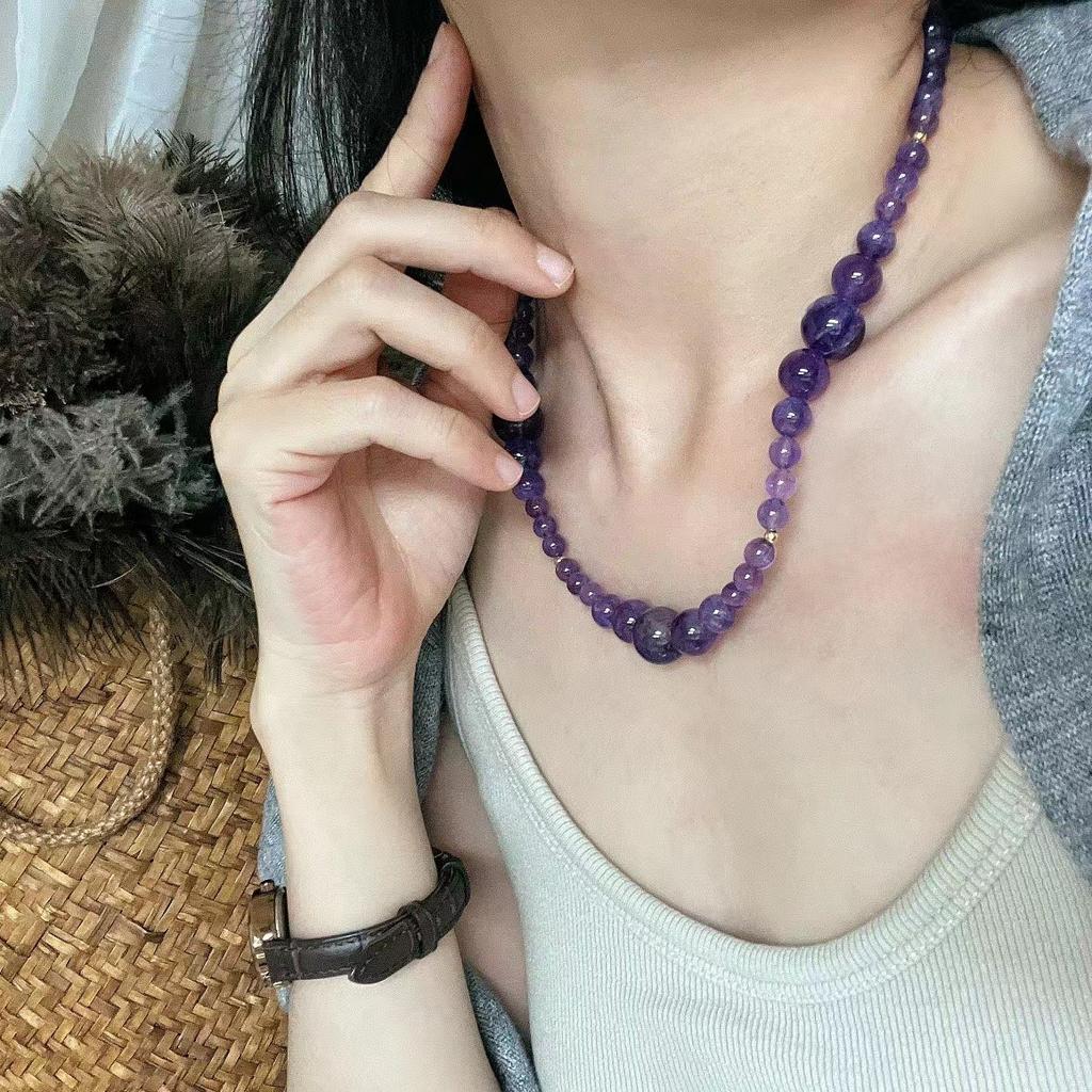 Design Original, Lavanda Natural, Ametista, Colar Sorriso Gradiente, Gargantilha Feminina, Corrente Clavicular Vento