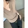 Button half open neck ice silk knitted long-sleeved shirt women's summer thin soft waxy slim slim bottom top