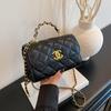 Bolsa Transversal Pequena Xiangfeng Mini com Corrente em Xadrez Diamante e Bola Dourada - Vermelha, Moda Outono