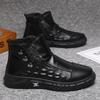 Winter cotton shoes men's velvet thickened Martin boots casual warm soft sole leather surface high top board shoes men's leather boots