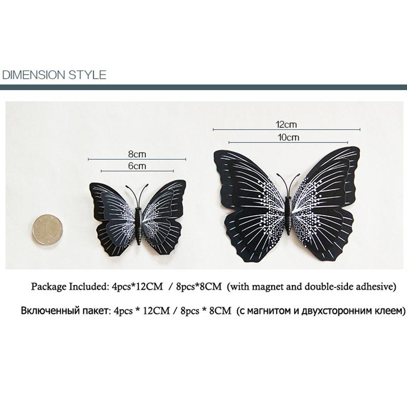 12 Peças Sete Cores Sólidas Camada Dupla Borboleta 3D Adesivo de Parede Para Casamento Decoração de Casa Borboletas Magnéticas Adesivos de Geladeira