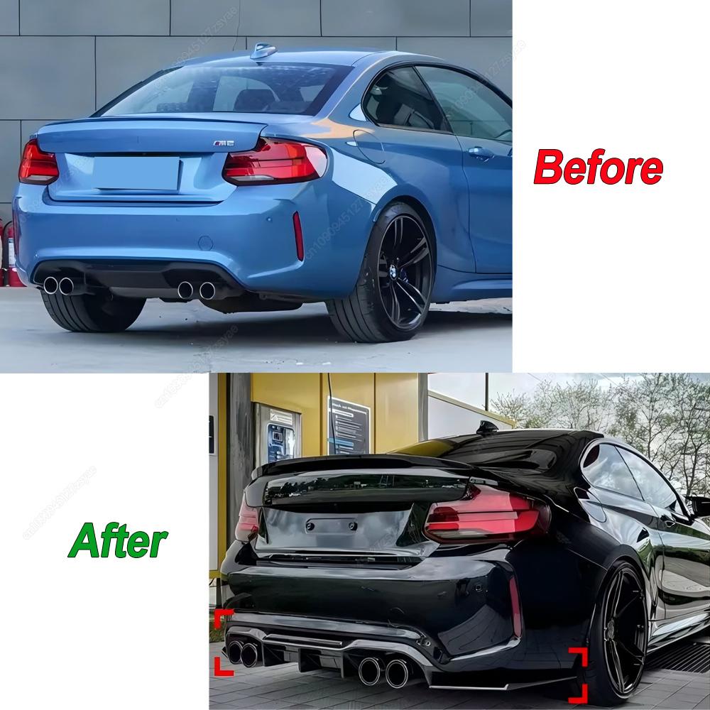 Car Rear Bumper Splitter Lip Diffuser V Style For BMW 2 Series F87 M2 M2C Coupe Competition 2016-2022 ABS Black Bodykits Tuning