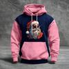 Moletom Masculino Casual Esportivo Confortável com Capuz e Bloco de Cores com Estampa de Natal