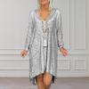 Vestidos de Veludo com Lantejoulas Femininos Manga Comprida Decote V com Gola Vestido Formal de Coquetel para Festa de Formatura
