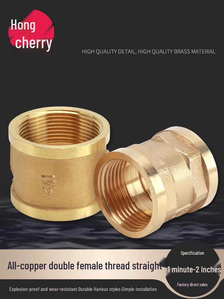 Conexão de Latão com Rosca Dupla Fêmea para Tubo de Água de 1 Polegada, Opções de Rosca Interna: 1,2/1,5/2 Polegadas, Conexão Reta de Cobre.